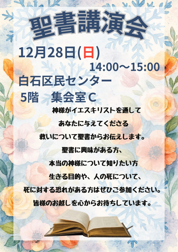 私たちの教会は聖書を神様の権威ある御言葉と信じ、イエス・キリストが人となられた神であることを告白するキリスト教会です。